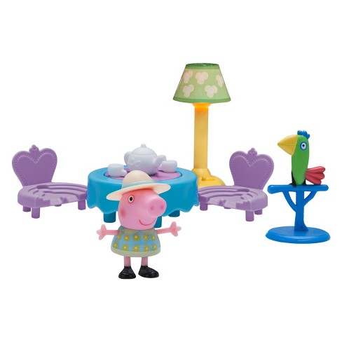 Amazon Com Peppa Pig Little Rooms Tea In The Parlor Tea Party Playset 6 Pieces Includes A Peppa Figure Table 2 Chairs Polly Parrot Lamp Ages 2 Toys Games