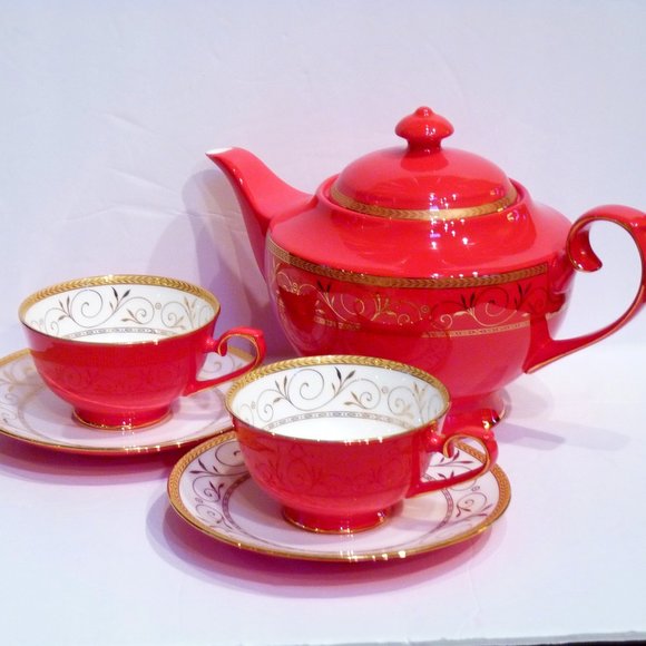 Red New Bone China Tea Set With Teapot 4 Tea Cups Teasenz