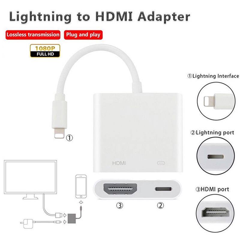 The Lightning Digital AV Adapter supports mirroring of what is displayed on your device screen including apps presentations websites slideshows and more to your HDMI-equipped TV display projector or other compatible display in up to 1080p HD.